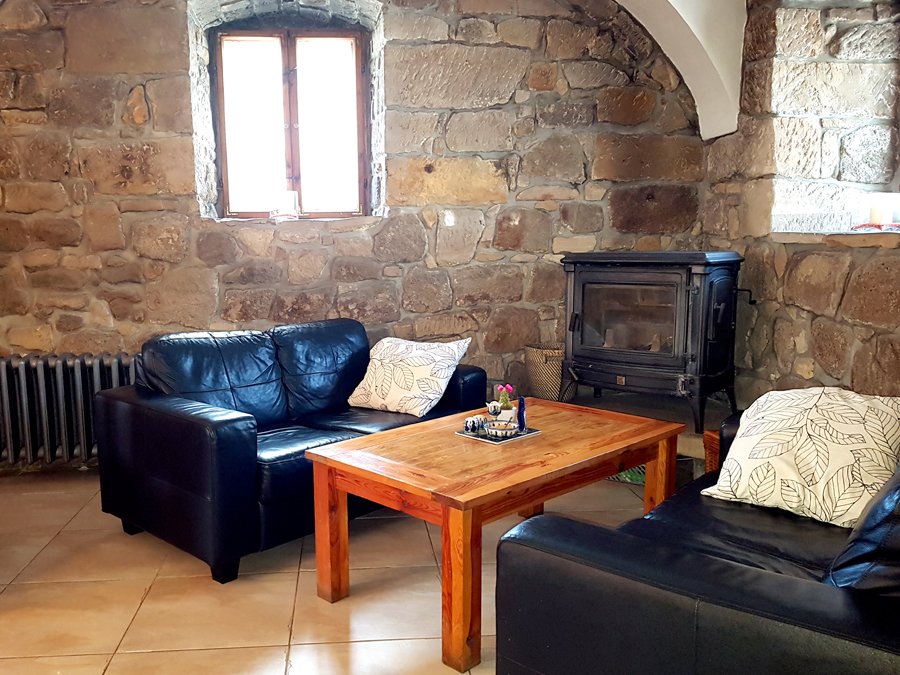 The old stables, with its vaulted ceiling, central column and sandstone walls, has been transformed into our dining room and restaurant.